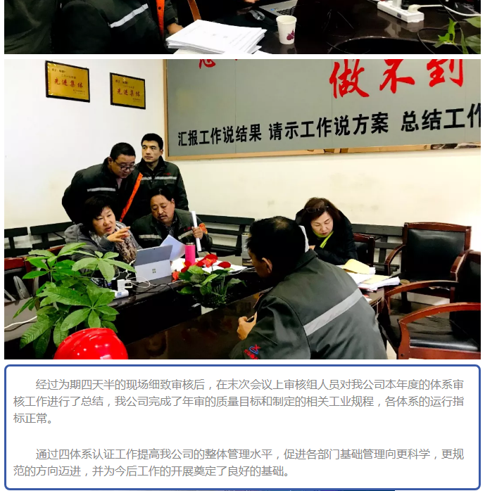 我公司順利通過2018年度四體系認(rèn)證審核