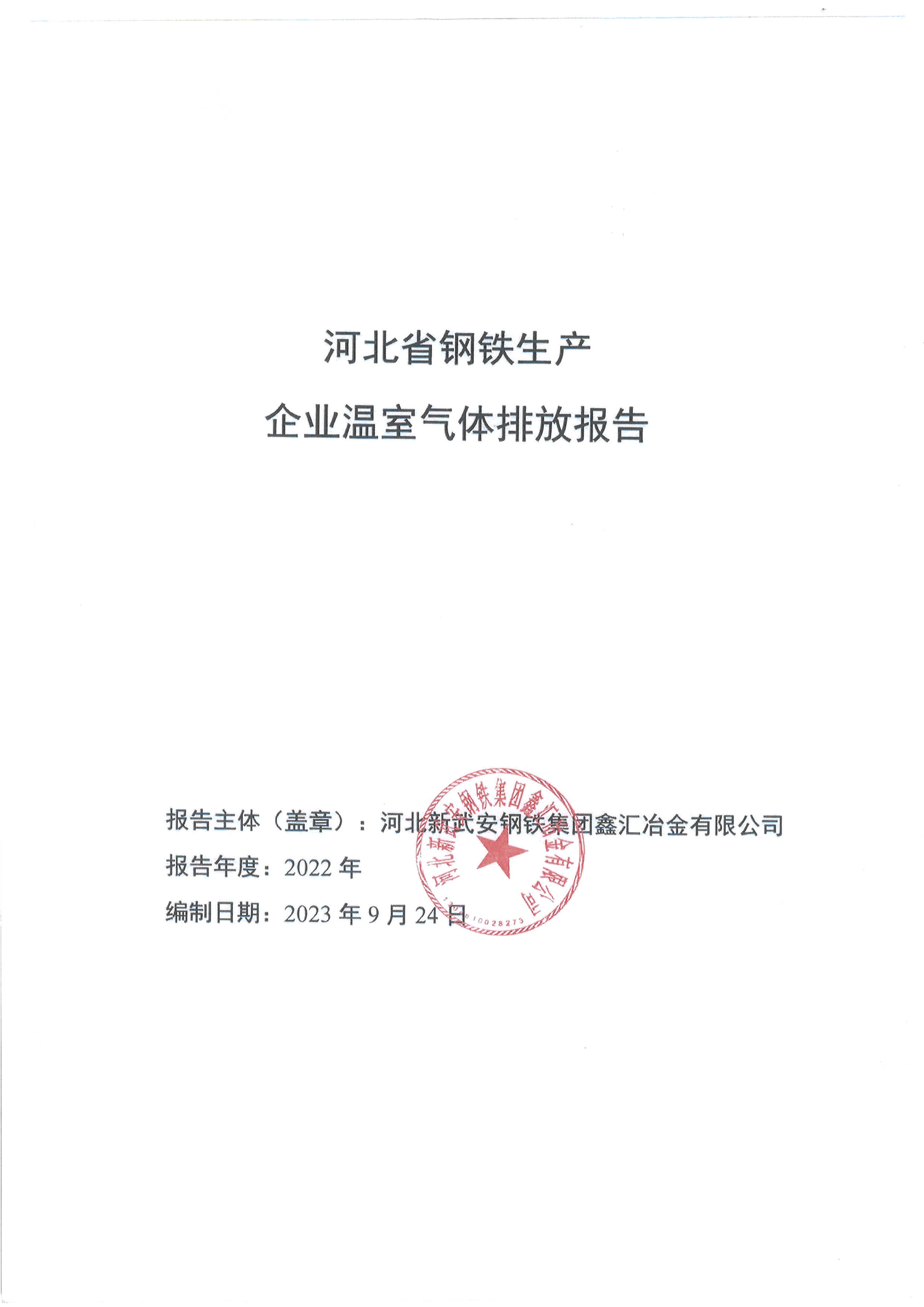 2022年河北新武安鋼鐵集團鑫匯冶金有限公司碳排放報告