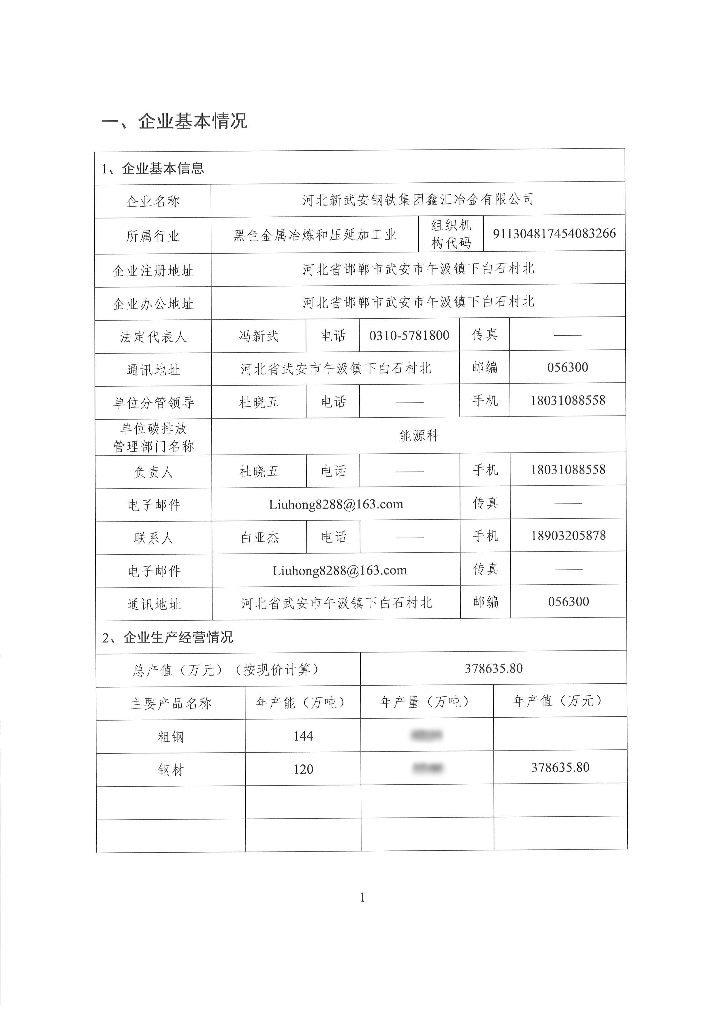 2021年河北新武安鋼鐵集團鑫匯冶金有限公司碳排放報告